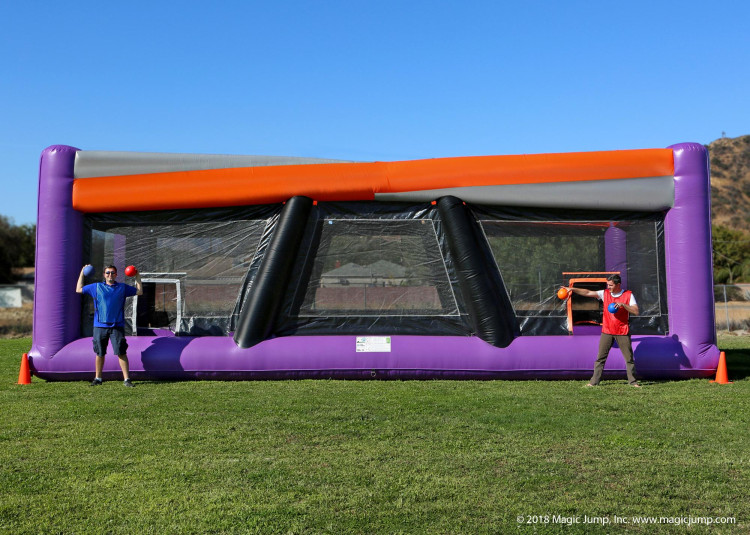 Dodgeball has always been a fun team sport and with Magic Jump's Dodgeball Arena, everyone can enjoy hours of sporting fun together. Now with an updated design that all are sure to love, this all-enclosed inflatable arena has plenty of space for everyone to gather and experience the excitement of Dodgeball Arena. Organize teams of up to four players each on opposite ends of the arena. The Dodgeball Arena is even separated into three sections to accommodate any variation of the sport. Magic Jump has also customized this structure to allow for a net to be hung across the middle of the arena. Now everyone can also enjoy a game of volleyball. And if you want to get creative, combine the two sports and have some fun playing dodge-volley. Participants can create their own rules for this game, but one suggestion would be to try to eliminate opponents with a volleyball spike. Whatever you choose to play inside the Dodgeball Arena, you are sure to have an amazingly fun time.