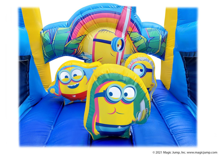 A 50-foot-long tropical Minions-themed obstacle course packed with pop-ups, climbing, and sliding